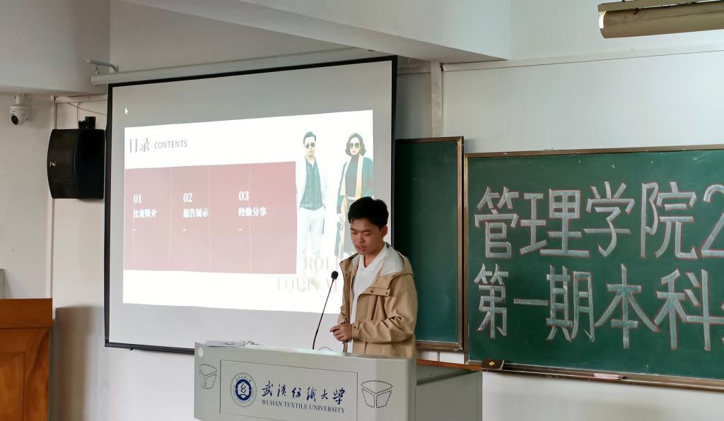姚震寰同学围绕参赛作品“衣吹半夏买路狂飙”影视剧角色同款服饰购买意愿调查,从比赛简介、报告展示、经验分享三个方面进行介绍;并着重就市场需求、调查思路、模型设计、问卷设计等相关内容进行了分享。