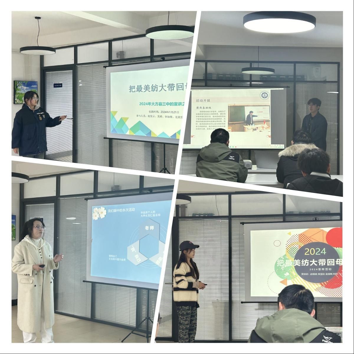 3522vip浦京集团官网坚持以人才培养为中心,积极推进教育教学改革,重视学生社会实践活动,领导班子专项部署寒假社会实践活动,鼓励和组织学生参与其中,在实践中拓宽见识,增长才能。2024年3月10日晚,“把最美纺大带回母校”寒假社会实践答辩会在“蓝茑轩”学生成长服务驿站举行。3522vip浦京集团官网团委书记王双喜、各年级辅导员担任评委,立项申报的16支参赛队和学生代表参加此次活动。