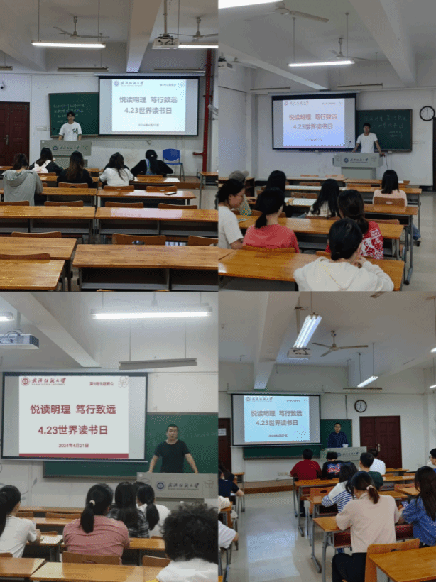 班会伊始,班主任向同学们介绍了世界读书日的由来和意义,强调阅读是心灵的滋养,更是我们实现“笃行致远”目标的重要途径。希望每位同学都能够抽出一些时间,静心阅读一本有益的书籍,让自己得到智慧启发。随后,班主任推荐了书单,强调作为当代大学生,我们不仅要注重知识的积累,更要注重实践能力的提升。班主任鼓励同学们以阅读为引擎,以实践为动力,不断追求卓越,实现自己的人生价值。同时介绍了学校读书月的主题诗展、游园会等活动安排,鼓励同学们在学习之余积极参加各类活动,在活动中感受读书的趣味。