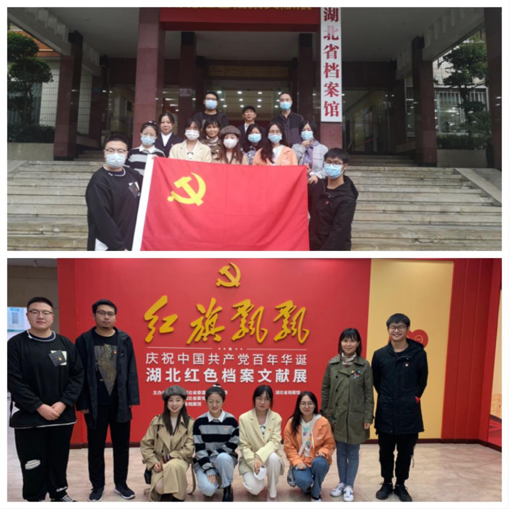 为庆祝中国共产党成立100周年,深入开展党史教育学习,深刻领会党的光荣革命历史,加强支部党员的党性修养,激发党员干部继承和发扬党的光荣传统,10月15日,3522vip浦京集团官网学生第三党支部党员在校档案馆馆长袁卫华同志结对带领下,与档案馆教师党员共同前往湖北省档案馆开展“红旗飘飘——庆祝中国共产党百年华诞湖北红色档案文献展”党史学习教育。