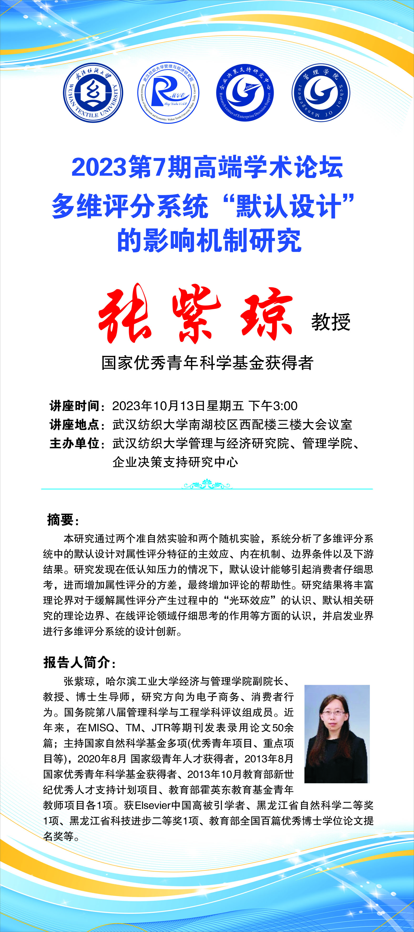 学术讲座预告:2023第7期高端学术论坛 多维评分系统“默认设计”的影响机制研究