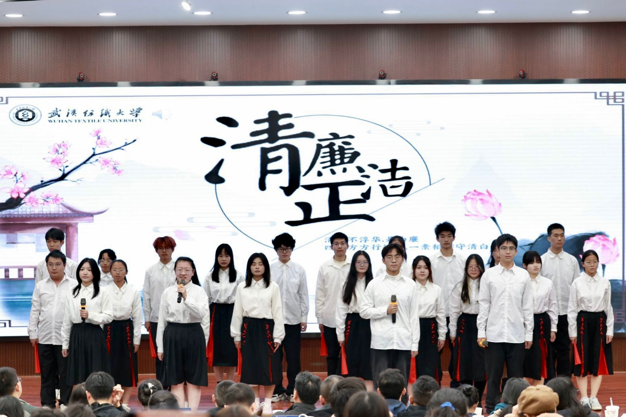 (纺织学院以“廉韵华章,诚筑未来”为题,伴着悠扬笛声,缓缓叙述旧时廉洁篇章,大胆展望未来廉洁大道)