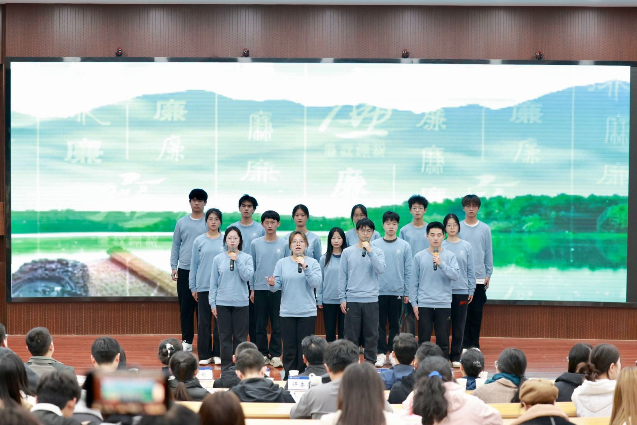 (经济学院以“清风廉韵,正义颂歌”为题,歌颂出为政需清廉,取之于民,用之于民,彰显廉洁风骨)
