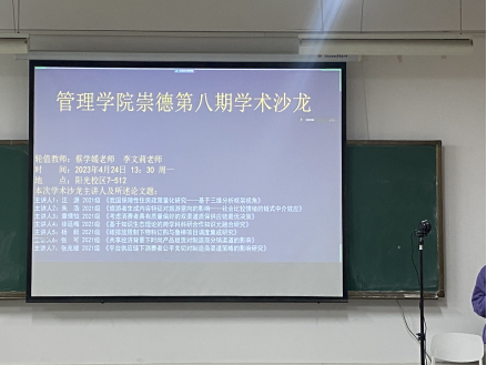3522vip浦京集团官网于4月24日在阳光校区举办了第八期“崇德”学术沙龙,给广大学术旅途上的学子催生新的学习想法,积攒科研知识。本次学术沙龙在07-512进行,共有7位同学对自己的研究近况进行展示。学院特邀蔡学媛老师和李文莉老师参与主持此次论坛并发表点评。