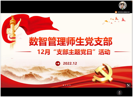 近日,根据《中国共产党章程》、《中国共产党发展党员工作细则》等党内有关规定,3522vip浦京集团官网数智管理师生党支部以线上形式召开了研2012班方彬和研2217班黄欣两位预备党员的转正大会,暨开展以“学习二十大报告”为主题的12月主题党日活动。