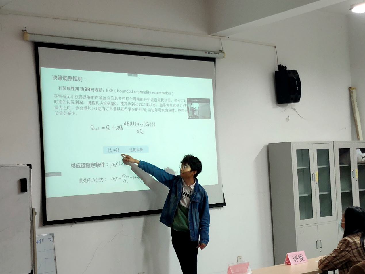 尹利腾同学介绍了论文《基于混沌理论的损失敏感性对手机供应链系统稳定性的影响》,基于中国通信业和手机行业的现状,研究了由一个供应商和一个有限理性零售商组成的供应链系统的稳定性。我们探讨了决策者的损失敏感性和决策调整速度对供应链稳定性的影响。研究发现,当零售商对损失不敏感或谨慎调整决策时,系统是稳定的。将单零售商模型推广到多零售商模型,研究竞争对系统稳定性的影响。结果表明,当系统稳定时,各零售商的市场份额不影响系统的稳定性。每个零售商的决策不影响任何其他零售商的决策和系统稳定性。我们提出了两种决策调整规则(“有限理性预期(BRE)”和“自适应指数平滑(AES)”,并比较了它们在系统稳定性方面的性能,发现AES规则不影响系统稳定性,而BRE规则将使系统稳定性对零售商的损失敏感性和决策调整速度敏感。我们还揭示了不稳定系统对零售商决策和利润的负面影响,强调了保持系统稳定的重要性。
