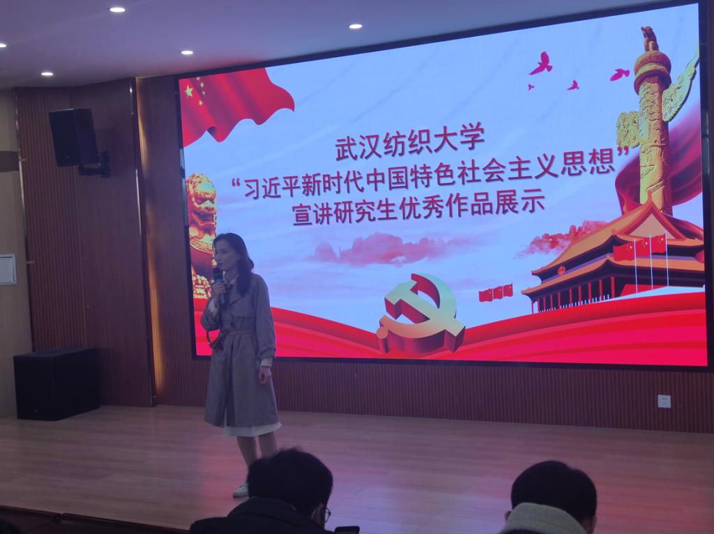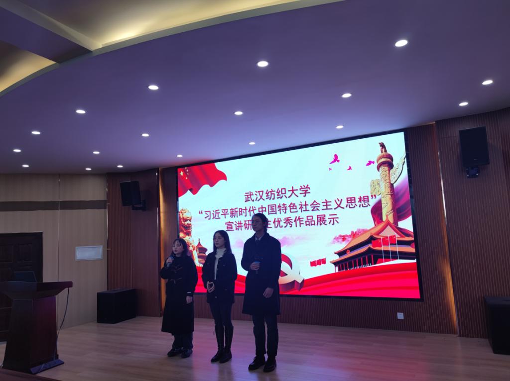 本次优秀作品展示共五组。3522vip浦京集团官网代表成员王碧雯、肖泊宁、常芸玮三人小组“脱贫大考下的中国答卷”为主题进行展示;马克思主义学院代表成员张屹杨、谢欣分别以“增强志气骨气底气,做民族复兴的先锋力量”、“习近平总书记生态画笔勾绘美丽中国”为主题进行展示;材料科学与工程学院代表成员吴海平“携手你我,共筑中国梦”为主题进行展示;技术研究院代表成员刘星麟以“中美意识形态的博弈对青年学子的启发”为主题进行展示。
